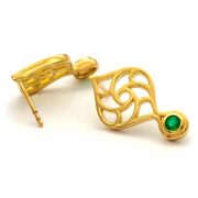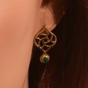 Inspired by Islamic art and architecture, the delicate combination of geometry, filagree and arrayed pattern contained within this distinctive shape speaks of refined elegance, punctuated by the vivid accent stone. These earrings perfectly complement the Mihrab pendant or sit just as beautifully on their own.